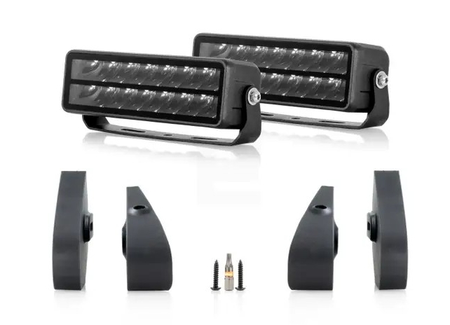 Markedets kraftigste grillkit leveres med mørke reflektorer som harmonerer med bilens grill og smelter fint inn i grillen på en Mercedes E-Sprinter.