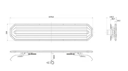 BriodLights Horizon er en helt ny serie med aerodynamisk design. 14 blinkemønster, nattsenking. Cruise light funker bare med trådløs fjerkontroll. 36 + 144 LED. 98Watt. Høyde 24mm, dybde 218mm. Leveres med metall og plast braketter og universal festekrok for dørramme. 4 kabler ut fra lampen, rød: +, sort: jord, gul: skifte mønster, hvit: nattsenking. IP67, CISPR 25 CLASS 3 R65 TA2 ECE R10. Ønskes trådløs fjernkontroll bestilles det på eget varenummer 2124.