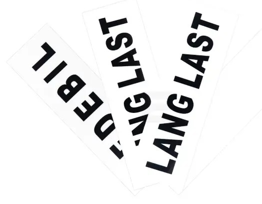 I denne pakken får 2 stk LANG LAST, 2 stk TUNG LAST, 2 stk LEDEBIL og 2 stk skilt uten tekst.